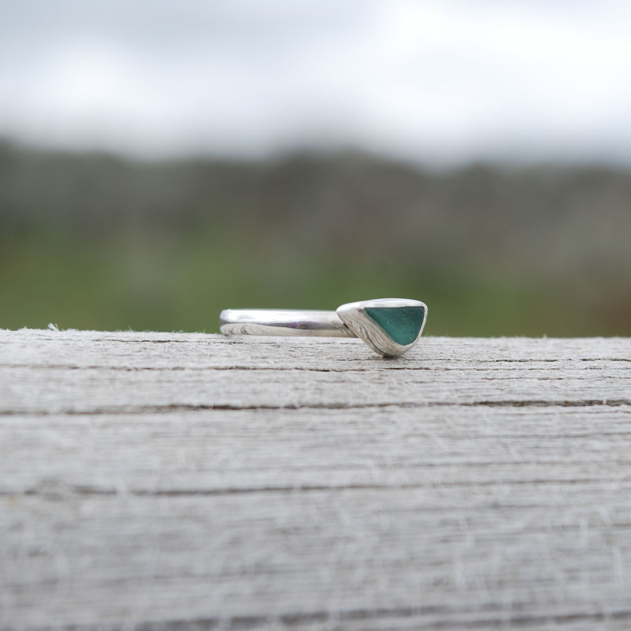Light blue sea glass focal point. Simple sterling silver metal. Size 7.5.